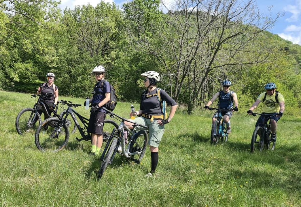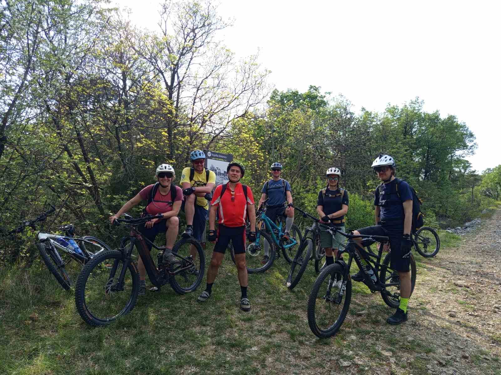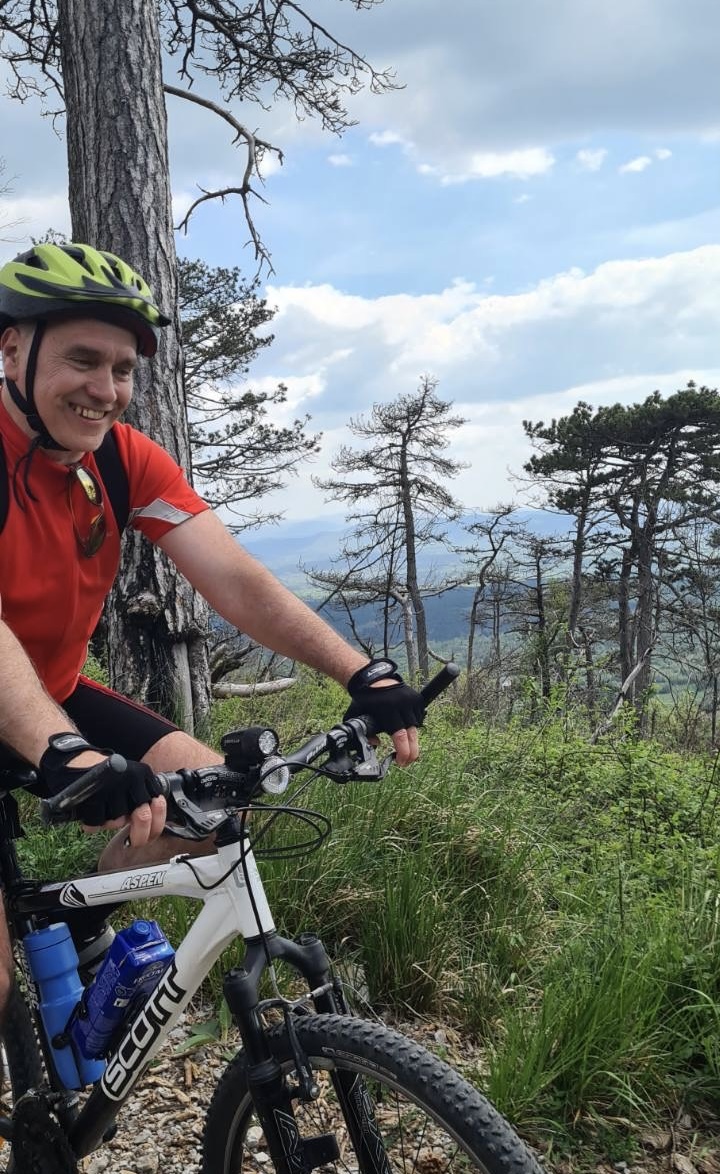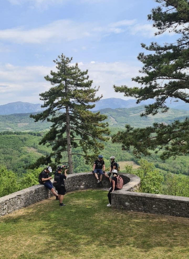 Po precej »zahtevni« kraški podlagi smo v objemu sonca, cvetočih grmov in dišavnic vihteli pedala vse do Stjenkove koče na Trstelju in naredili prvo daljšo pavzo. Za glasbeno spremljavo med malico je poskrbel kar oskrbnik sam, ki je okoli koče žvrgolel kot ptiček. Po pavzi je sledil še krajši vzpon do samega vrha Trstelj, ki je ponudil krasen razgled na Vipavsko dolino, Kras, Tržaški zaliv in Furlanijo.