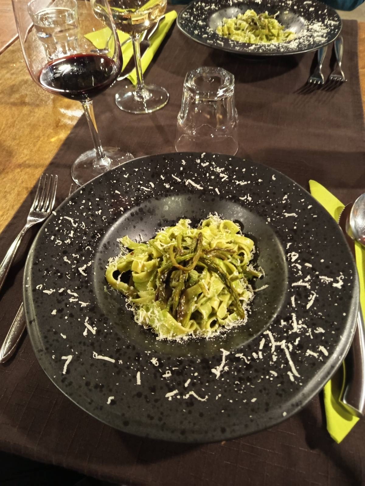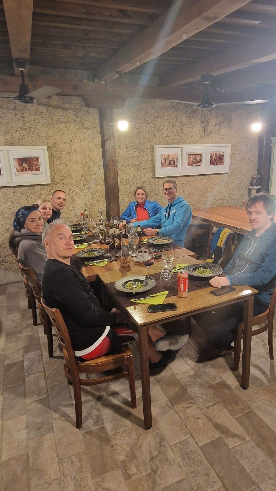 No, do tja pot ni bila obarvana samo v smislu spusta, pač pa se je bilo potrebno do končnega cilja navzgor kar precej namučiti, za kar je poskrbela neizprosna peščena in skalnata podlaga. Kar dobro zdelani, a ponosni smo se posedli za mizo v objemu tipičnega kraškega atrija. Ob vonju španskega bezga in kapljici odličnega kraškega vina, nam je gospodarica pripravila domačo kulinarično razvajanje, ki so ga nedvomno popestrili še divji šparglji. Po klepetu polnem smeha in vtisov, smo dokaj hitro poniknili v globok spanec, počitek pa se je resničo prilegel.