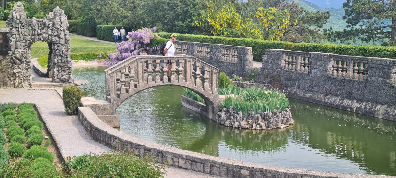 Zaradi dokaj zahtevne ture prejšnjega dne, ki je poskrbela za precej trde noge pa tudi slabe vremenske napovedi, so se vodniki odločili, da planirano turo tega dne skrajšajo, s tem pa so ji dodali kanček »nedeljske ležernosti«, kar smo pozdravili vsi. Po zajtrku se je del ekipe odločil za jutranjo razgibavanje po bližnjem »trailu«, drugi del ekipe pa za dišečo kavico. Skupaj smo jo nato mahnili do slikovite kraške vasice Štanjel v občini Komen, jo prečesali po dolgem in po čez in si ob enem ogledali kulturni spomenik, Ferrarijev vrt. Sprehodili smo se po terasah, zasajenih s sredozemskim drevjem, grmovnicami in dišavnicami ter prisluhnili zoku vode iz ovalnega bazenčka z otočkom, v ozadju pa se je slikala gorata pokrajina.