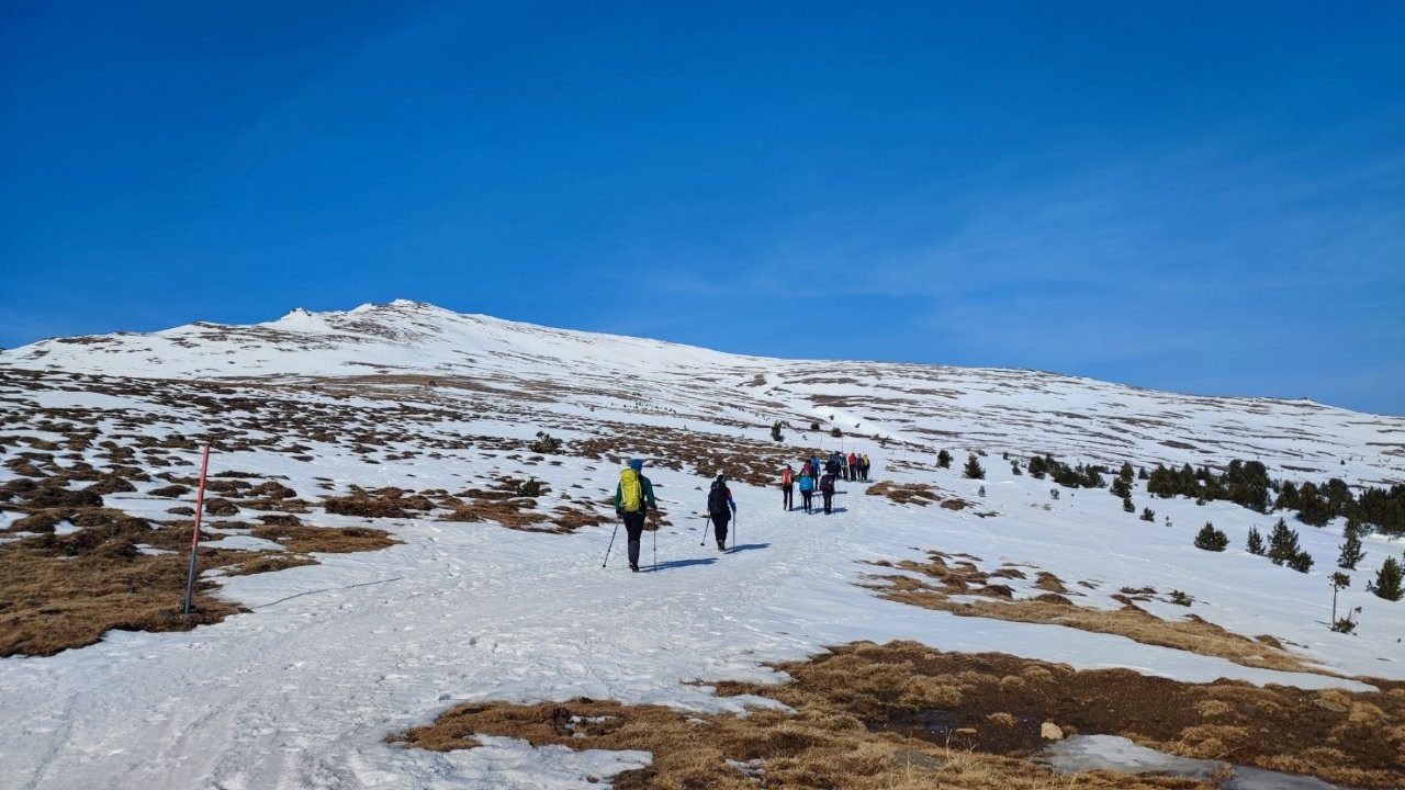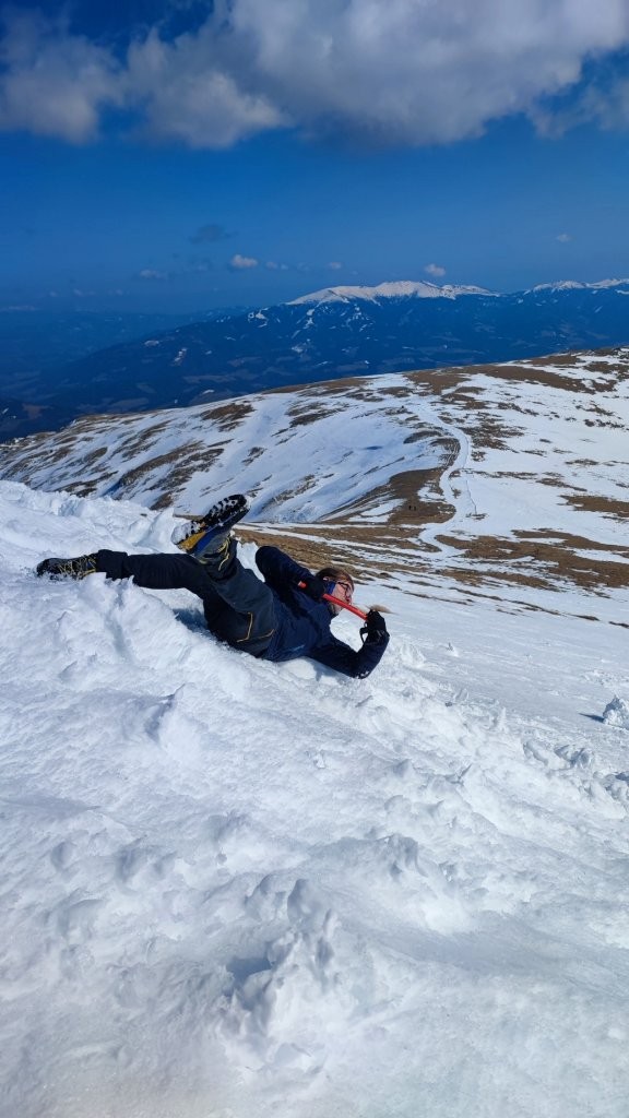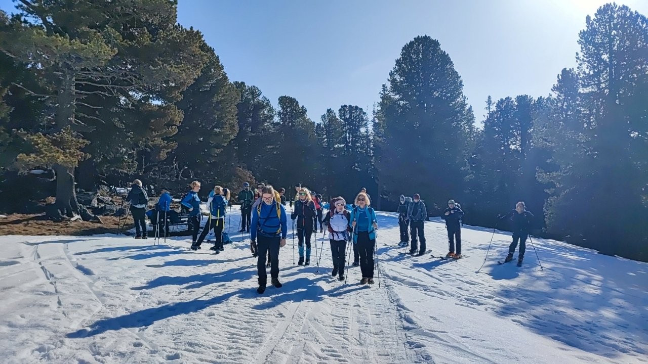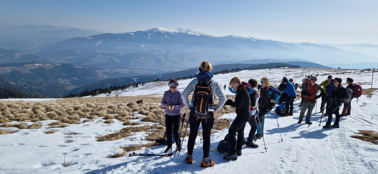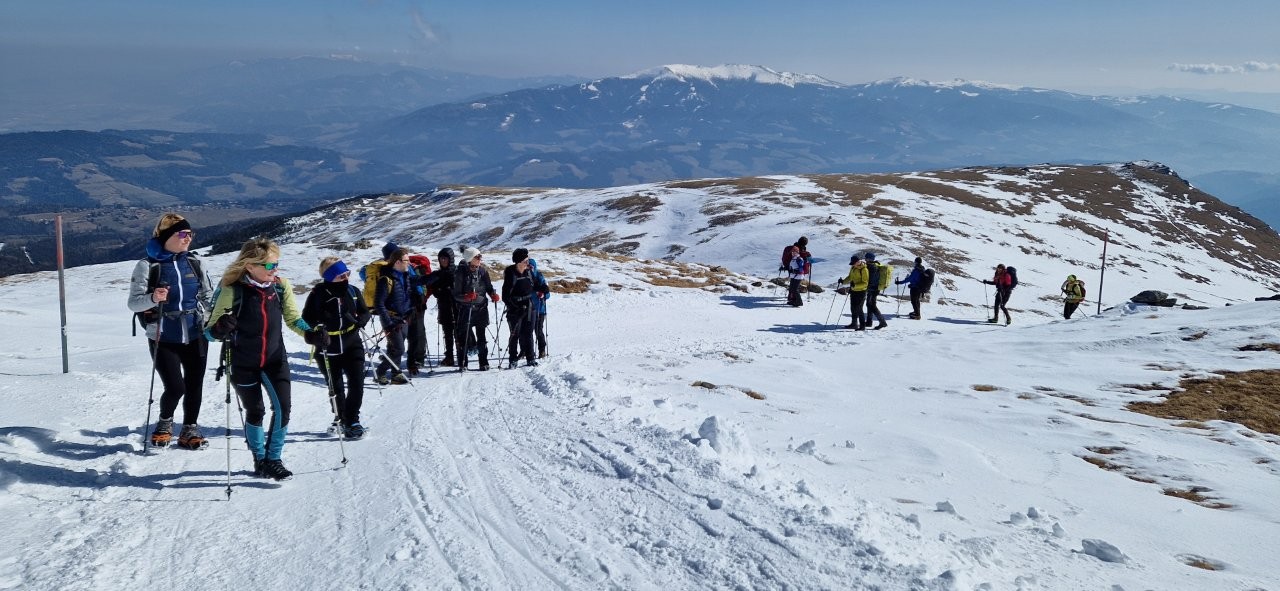 Pot nas je vodila po zasneženi pokrajini proti vrhu Zirbitzkogla, ki je priljubljen cilj tako pohodnikov kot turnih smučarjev. Ob ugodnih razmerah smo uspešno dosegli vrh, kjer smo si privoščili zaslužen počitek in okrepčilo v koči ÖTK Helmut-Erd-Schutzhaus, ki stoji tik pod vrhom.