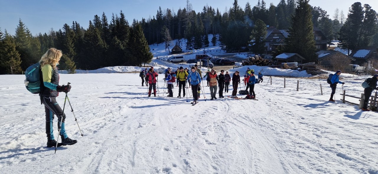 Iz Šoštanja smo se ob 6. uri zjutraj odpeljali s tremi kombiji in se preko Dravograda pripeljali do izhodišča pri koči Waldheimhütte na približno 1600 metrih nadmorske višine. Na izletu je sodelovalo 21 udeležencev in 5 vodnikov, od tega se je 7 udeležencev odločilo za turno smuko. Skupina je v lepem tempu proti vrhu napredovala približno dve uri in pol.